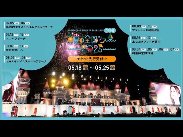 2025年5月18日[乃木坂46ニュース速報] 「真夏の全国ツアー2025」全国7ヵ所で開催決定!乃木ファンの方と雑談配信! ニュース動画 Twitter Facebook はてブ Pocket LINE コピー 2025.05.19