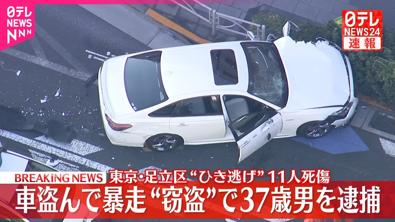警視庁によりますと、24日午後0時半ごろ、東京・足立区梅島の国道4号で乗用車が歩行者をはね、ケガ人が11人出ています。ケガをしたのは10代から80代の男女11人で、このうち80代の男性と20代の女性が意識不明の重体だということです。