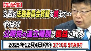 【生配信】やはり公明党の連立離脱は国益に叶う! 〜3回の参院質疑を終えて…〜