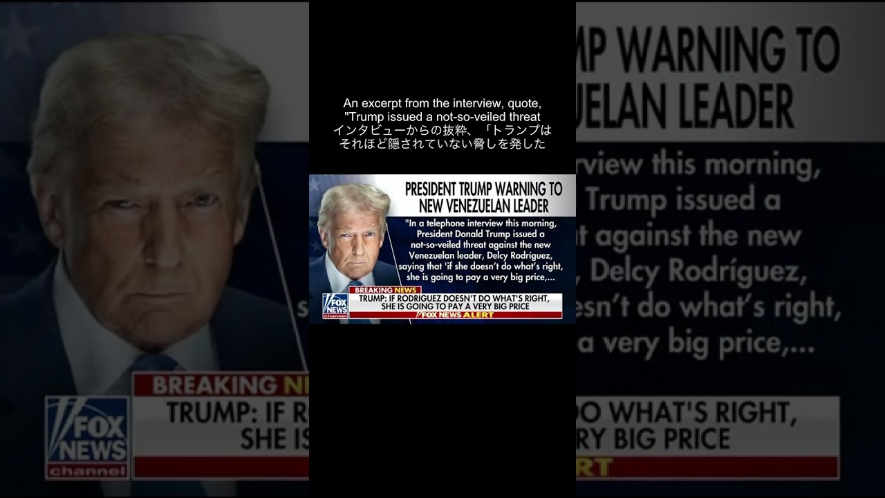 FOXニュース速報: トランプ大統領がベネズエラの新指導者デルシー・ロドリゲスに厳しい警告を発した。 ニュース動画 Twitter Facebook はてブ Pocket LINE コピー 2026.01.05