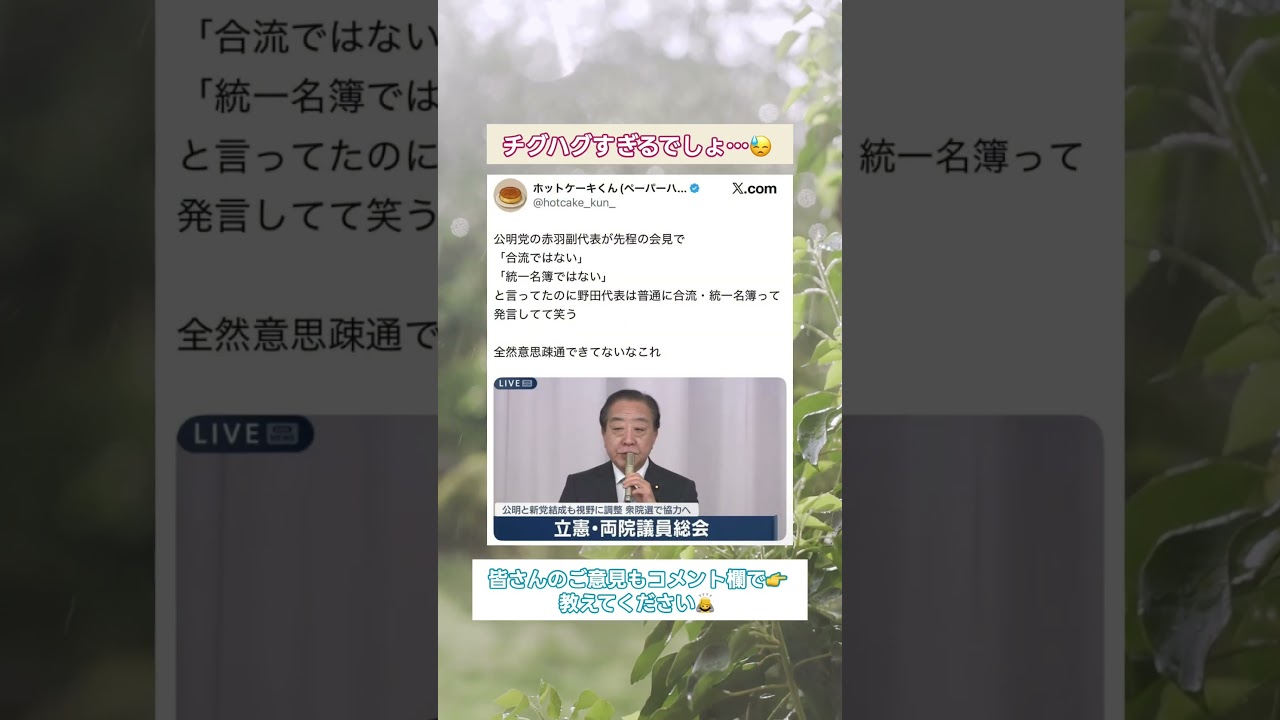 【速報】中道改革連合、蓮舫が批判#みんなの反応#ニュース#ネットの声