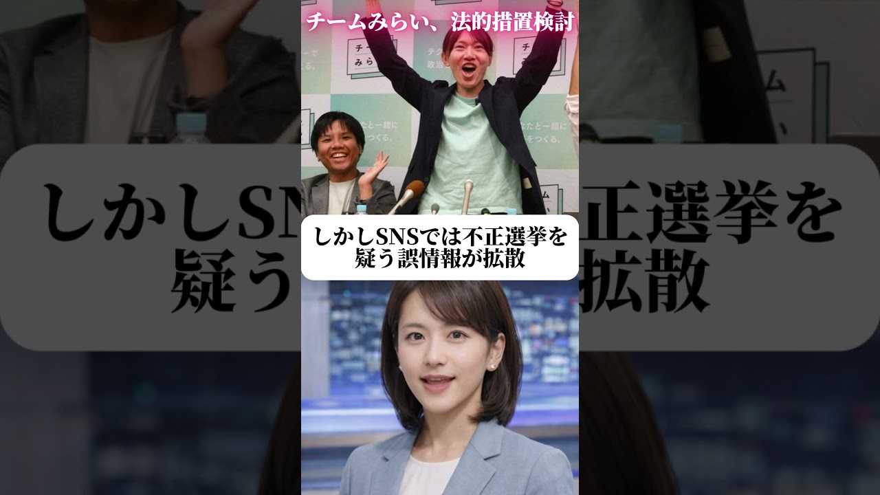 チームみらい、法的措置検討!#ニュース速報#法的措置 ニュース動画 Twitter Facebook はてブ Pocket LINE コピー 2026.02.20 誹謗中傷には法的措置、参政党もやってましたね
