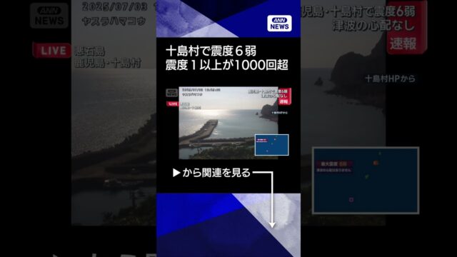 ニュース動画 【ニュース】【速報】鹿児島・十島村で震度6弱 先月21日から震度1以上の地震を1005回観測 #shorts
