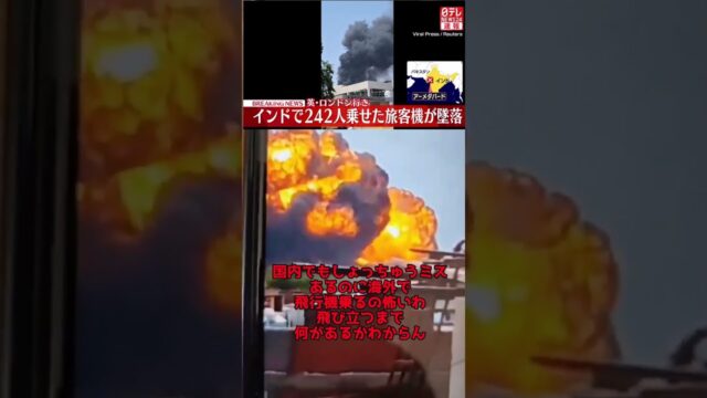 ニュース動画 【速報】インドで旅客機が市街地に墜落。乗客248人 #ニュース #まとめ #飛行機