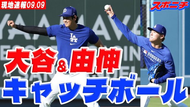 【9月9日現地速報】大谷翔平と山本由伸キャッチボール