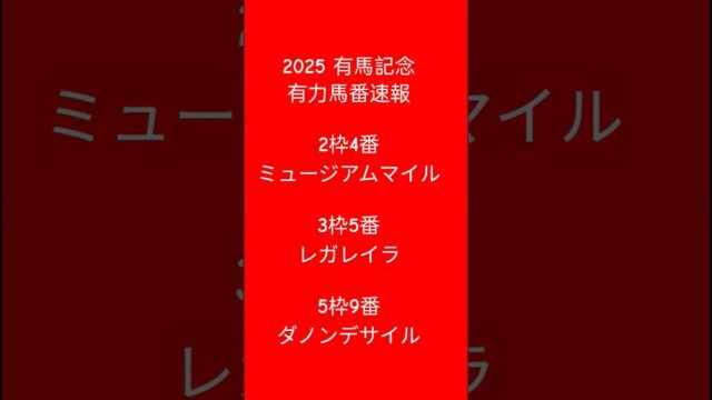 ニュース動画 2025 有馬記念 馬番速報 #競馬 #shorts #武豊 #ニュース