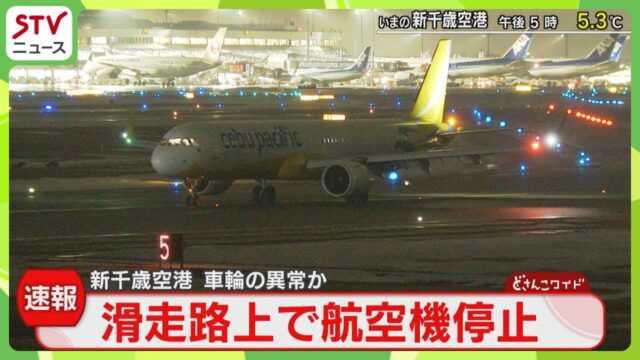 消防などによりますと午後5時前、新千歳空港の滑走路上で航空機が車輪の異常で停止したということです。