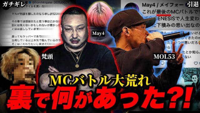 【速報】MOL53がまた、若手ラッパーと揉めた件やMay4のバトル引退。梵頭ブチギレるほどのことをされた件など、最近のMCバトルニュース