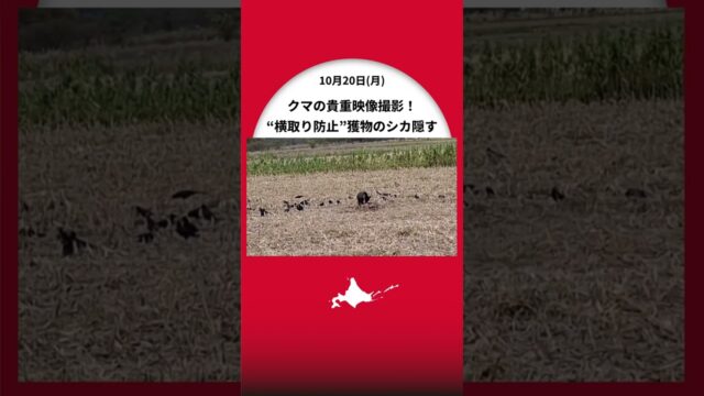 ニュース動画 【ヒグマ速報】「シカを食べています…逃げる気配はありません」猟友会のハンターが撮影した貴重なクマの映像〈デントコーンの畑で子グマがカラスに食べられないように獲物をわらで隠す〉北海道砂川市