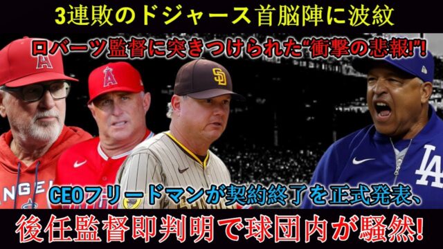 【速報】ドジャース首脳陣に3連敗の衝撃…ロバーツ監督に一報!フリードマンCEOが契約満了を正式に発表、新監督が急遽決定と球団内は大騒ぎ!