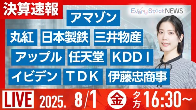 ニュース動画 【ライブ】丸紅 三井物産 伊藤忠 決算速報/東京エレクトロン株ストップ安/任天堂 KDDI イビデン/株式投資/最新情報/日経平均株価|8月1日(金)〈Every Stock NEWS 矢野 愛実〉