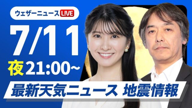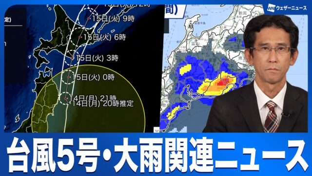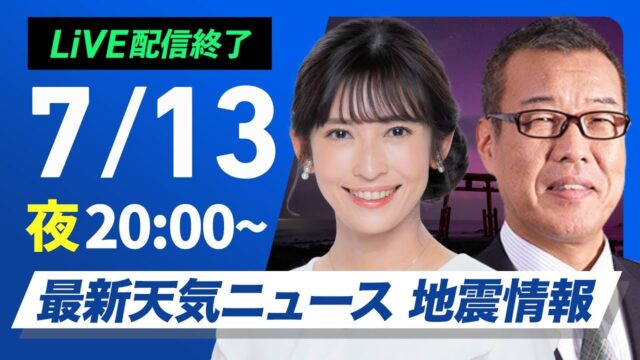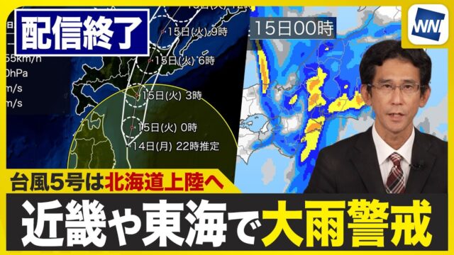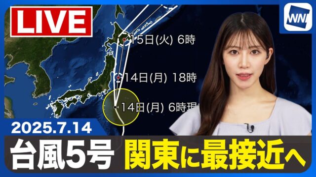 ニュース動画 【ライブ配信終了】最新天気ニュース・地震情報 2025年7月15日(火)/関東や東海は激しい雨に警戒 台風5号は北海道に上陸〈ウェザーニュースLiVEモーニング・魚住茉由/内藤邦裕〉