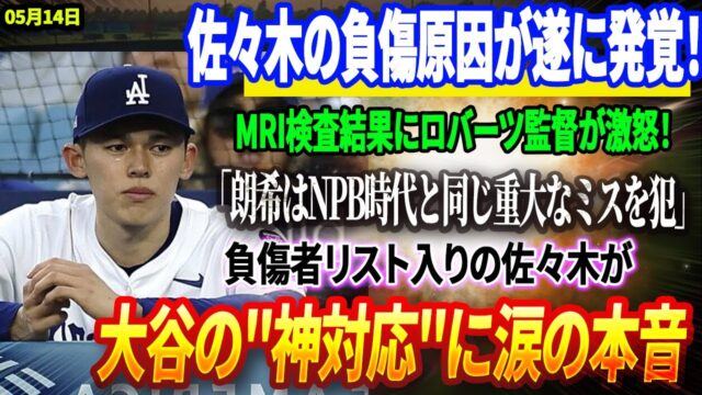 🔴🔴🔴【14日速報】佐々木の負傷原因が遂に発覚!MRI検査結果にロバーツ監督が激怒!「朗希はNPB時代と同じ重大なミスを犯した」!負傷者リスト入りの佐々木が大谷の”神対応”に涙の本音