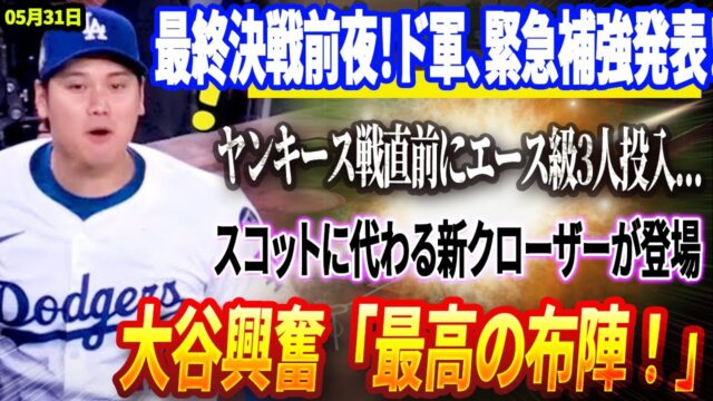 🔴🔴【31日速報】🚨最終決戦前夜!ド軍、緊急補強発表!ヤンキース戦直前にエース級3人投入…スコットに代わる新クローザーが登場に全米騒然 ! ジャッジの天敵だ!大谷興奮「この新しい布陣なら安心できる…」
