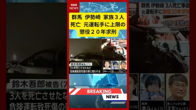 ニュース動画 【速報】群馬 伊勢崎 家族3人死亡 元運転手に上限の懲役20年求刑 #ニュース #群馬事故 #伊勢崎市 最新ニュースを一緒に追いかけましょう。 📌 チャンネル登録と👍高評価をお願いします! 👉 #飲酒運転 #危険運転致死傷 #交通事故ニュース #裁判速報 #被害者参加制度 #実刑判決 #最... 2026.01.31 ニュース動画