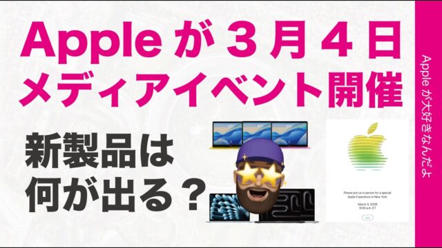 ニュース動画 【速報!】アップルが3月4日にメディア向けイベントを開催!新製品は何が出る?「 Special Apple Experience」 本日2/17未明に米国の各メディアがAppleからの招待状として3月4日に体験記者会見的なイベントの招待状をアップ!今日は米国主要メディアの伝え方や何が出そうと予測しているのかをまとめます。あわててやってるので、翻訳の日本語が少し不自然... 2026.02.17 ニュース動画