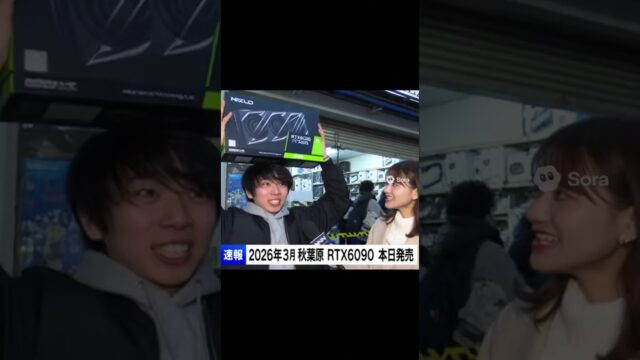 ニュース動画 Sora2で生成「2026年3月RTX6090発売」のニュース速報(嘘) 秋葉でRTX6090発売時おそらくこんな感じになるだろうとSora2で生成 設定では128GBとしたけど反映されなかったw #Sora2 #AI動画 #RTX6090 2025.10.06 ニュース動画